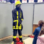 Ein weiteres Highlight war das „Feuerwehrmann-Feeling“: Jedes Kind durfte in die schwere Jacke eines Feuerwehrmannes schlüpfen und einen gelben Helm aufsetzen.