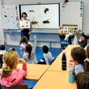 Das alles – außer den Hochhäusern – können die Lichtigfelder in Zukunft mit dem Ton ausprobieren. Und damit die Tassen, Müslischalen und vielleicht sogar schöne Sederteller spülmaschinenfest werden und bunt glänzen, hat die Schule schon ein paar wenige Glasuren besorgt. Bei den ersten Tests mit Effektglasuren, mit den Sorten Harlekin, Tiefseeblau und Bärenfell, war die Überraschung nach dem Glasurbrand groß. Ach, sooo sieht die Oberfläche nach dem Brennen aus!