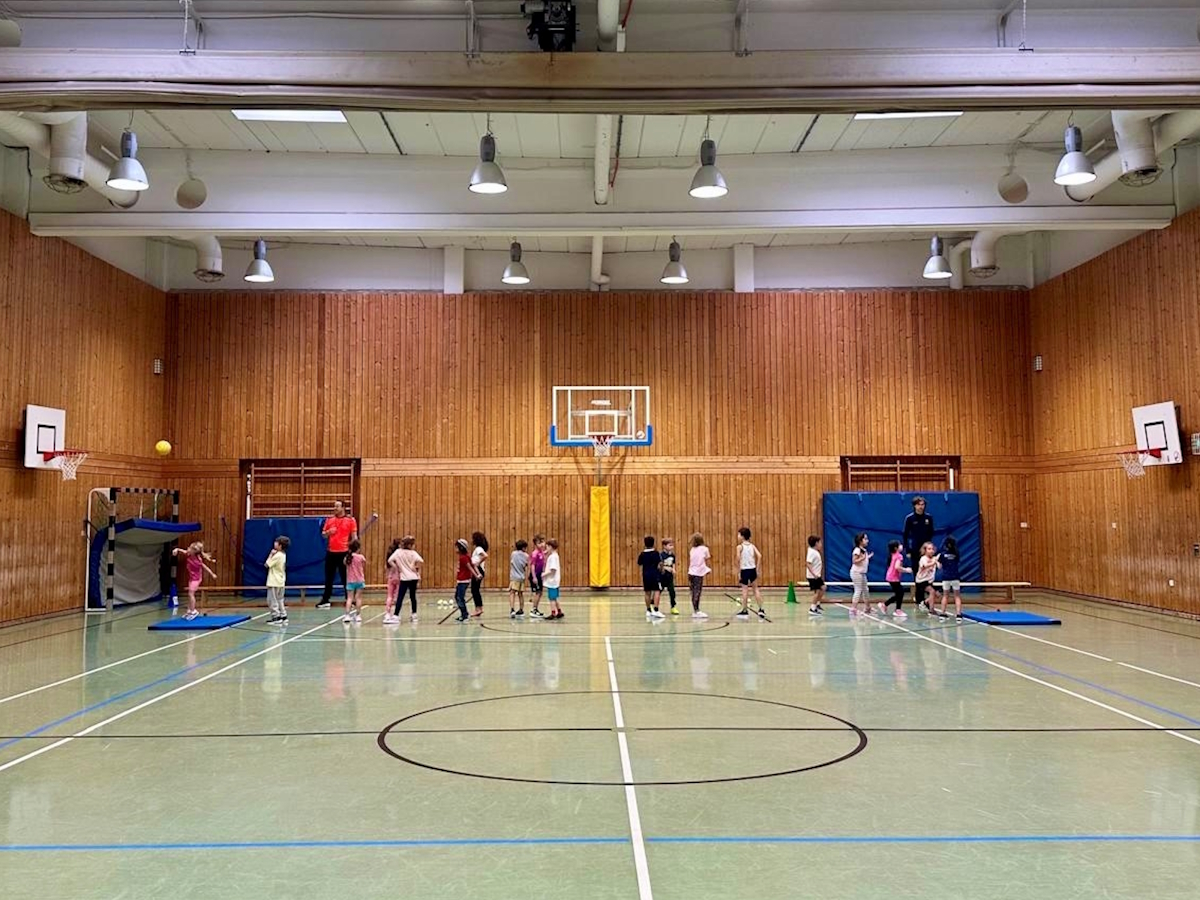 Mit viel Vorfreude kamen die Kinder in die Sporthalle. Alle Klassen nahmen an der Basketballwoche teil – die EST1-Kinder jeweils zwei Schulstunden, die übrigen Jahrgänge jeweils drei. Immer zwei Klassen eines Jahrgangs spielten gemeinsam und sammelten Punkte.