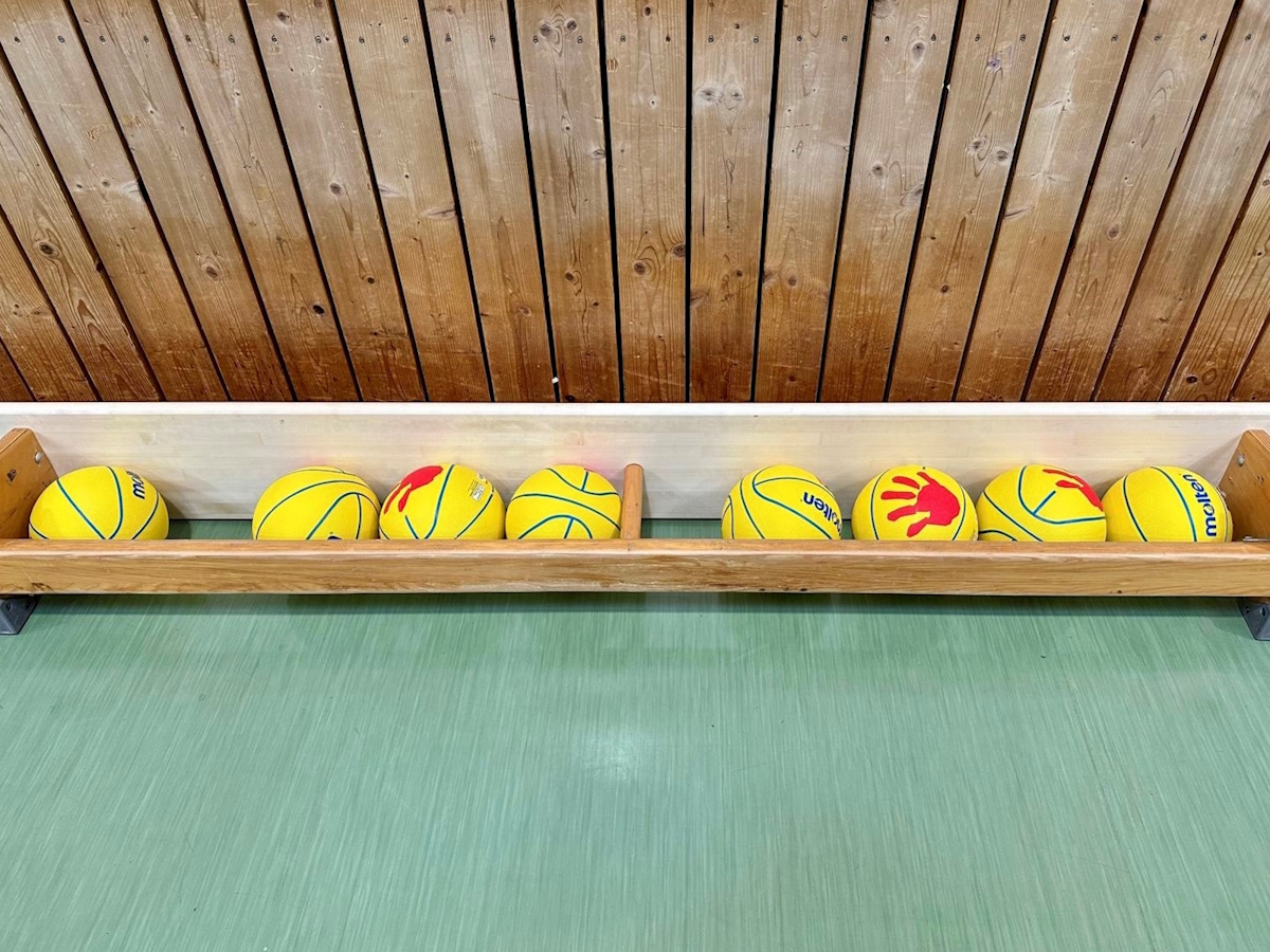 Für unsere Schule stellte der Deutsche Basketball Bund nicht nur die Bälle, sondern auch einen Übungskatalog bereit. Daraus wählte unser Sportlehrer sechs Bausteine aus den vier Bereichen Koordination mit und ohne Ball, Grundtechniken, Gemeinsam spielen und Gesundheit aus.